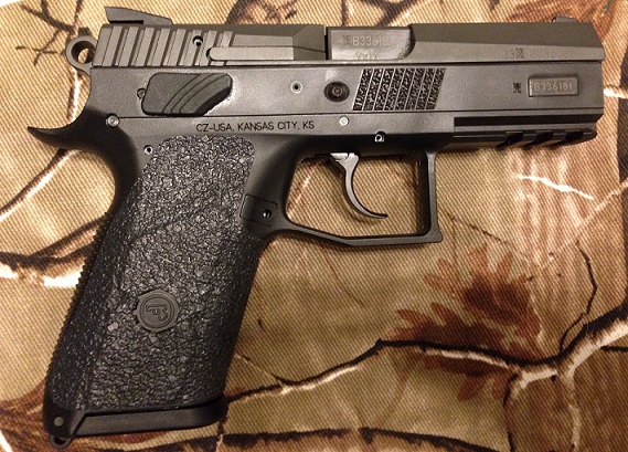 Tractiongrips for CZ P-07 Duty pistols. The overlay wraps around the front of the pistol, covering the